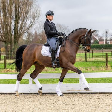 Born: 2016 Sexe: Gelding Colour: Darkbay Origin: Level:Lucky is a 9 years old darkbay gelding doing Junioren level.