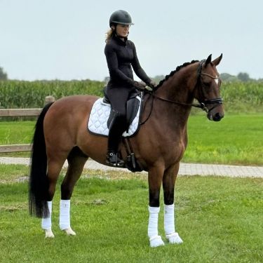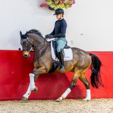 Born: 2015 Sexe: Gelding Colour: Bay Height: 16.1 hs Origin: Level:Kadootje is a 10 years old bay gelding 16.1 hs